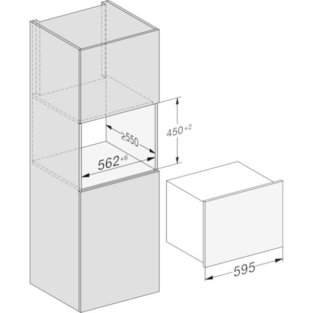 Schrank mit Maßen: 562x550x[Höhe nicht ersichtlich]. Daneben Schrank mit 595x450x[Höhe nicht ersichtlich]. Technische Zeichnung.