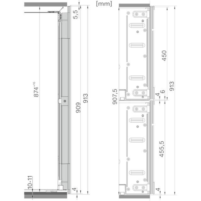 Technische Zeichnung eines vertikalen Profils mit Maßangaben in Millimetern. Höhe 874,16 mm, Breite 19 mm.